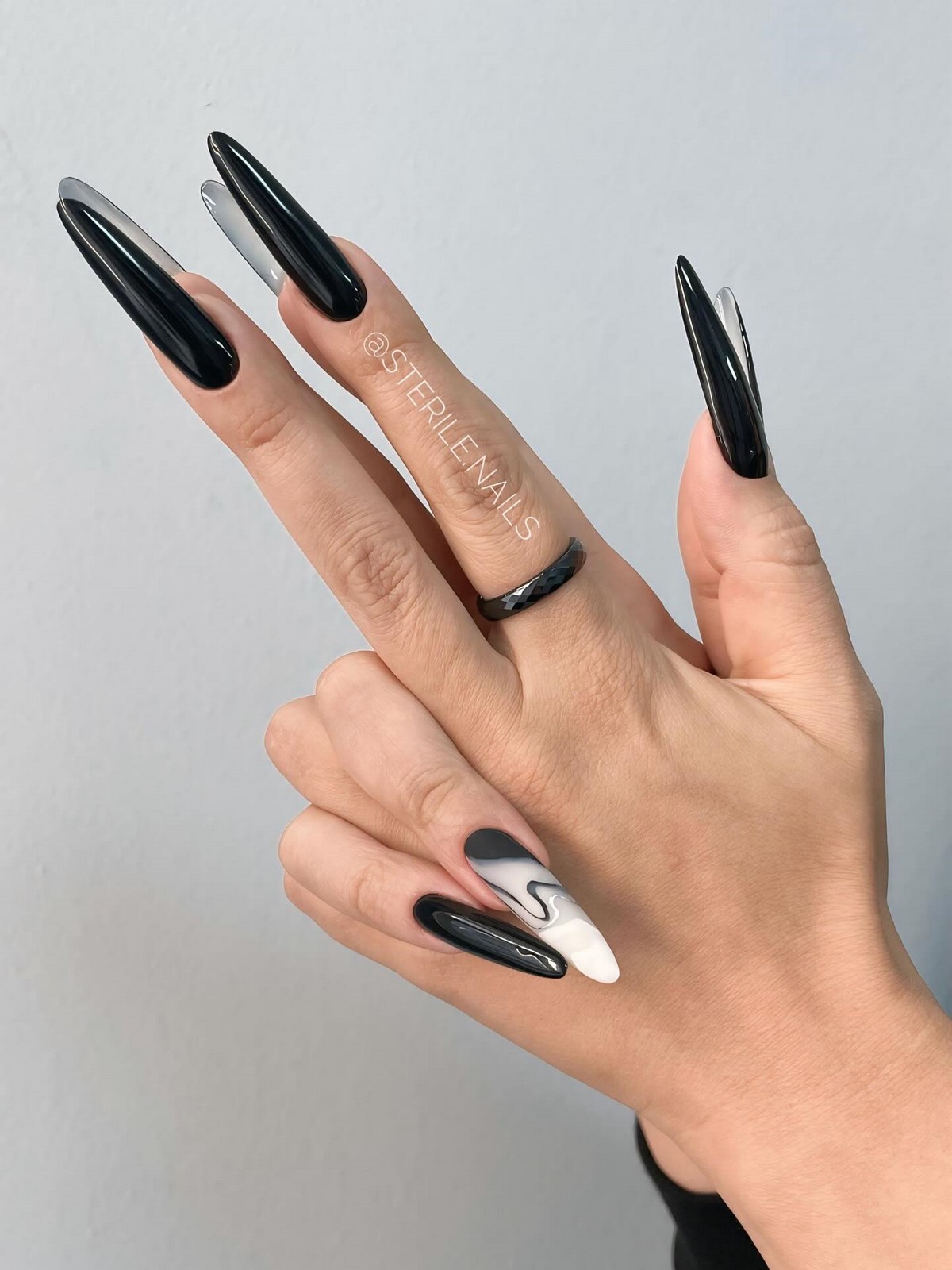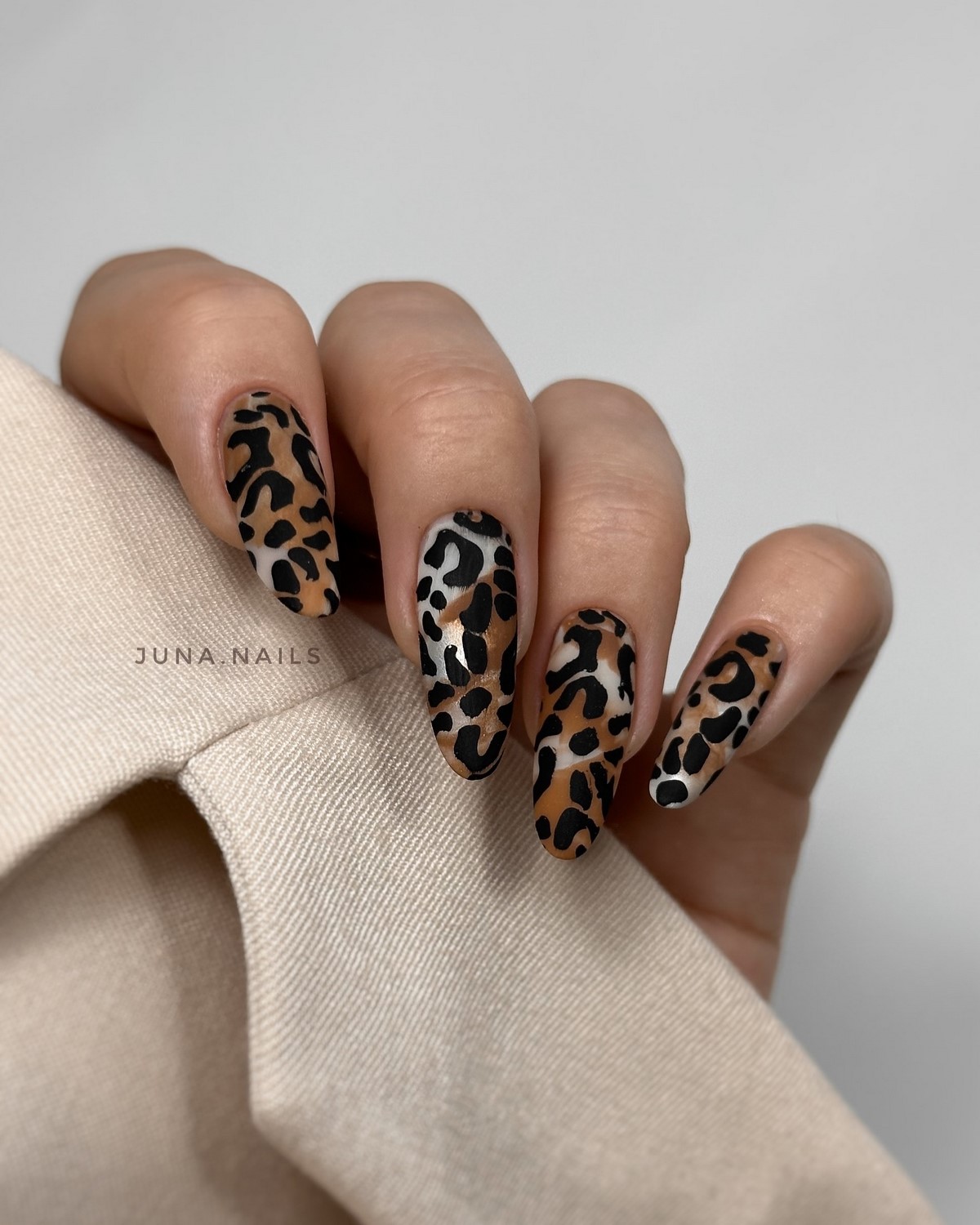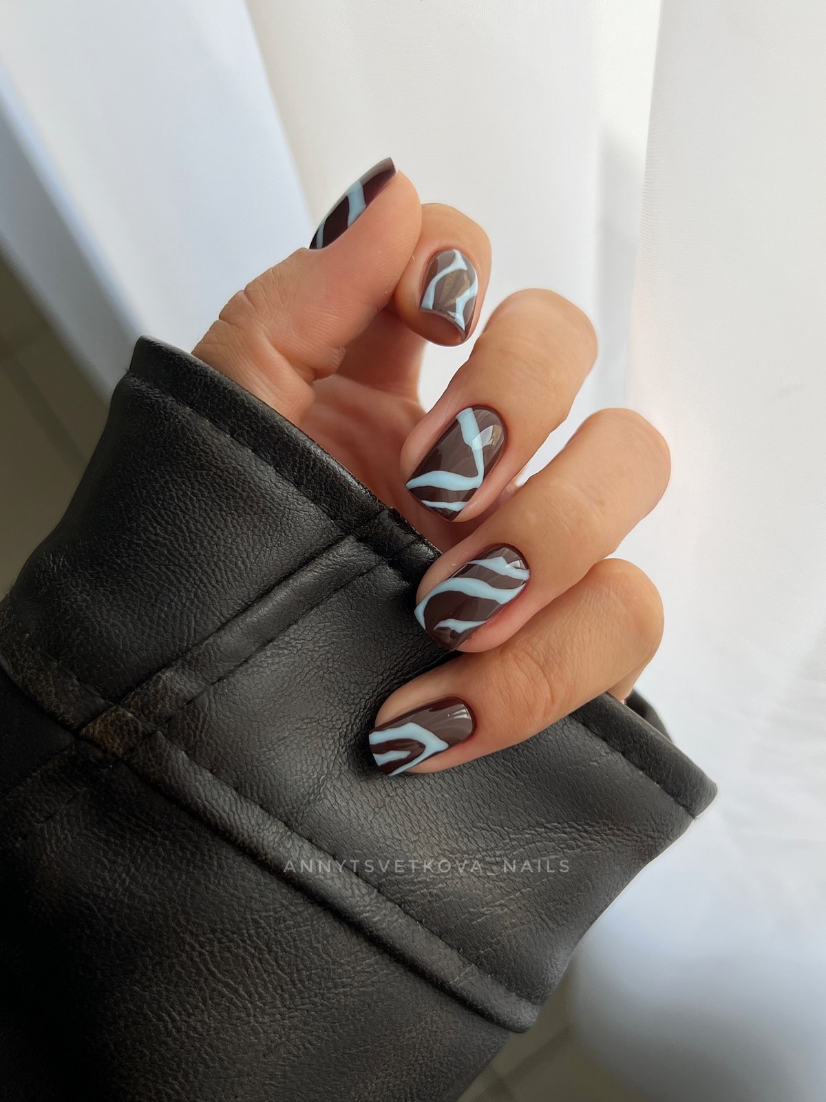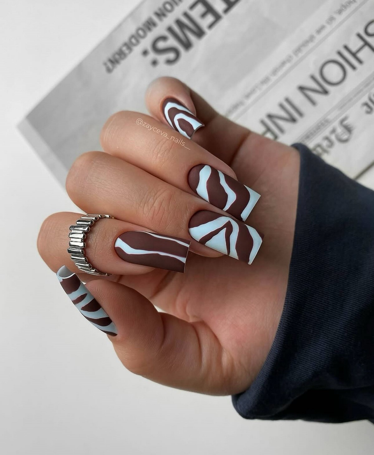 Принт «зебра» вновь в центре внимания. Он идеально подходит для тех, кто любит сочетание графичности и элегантности. Бело-черные волны можно выполнить на прозрачной базе или в бежево-молочной палитре для мягкого эффекта.