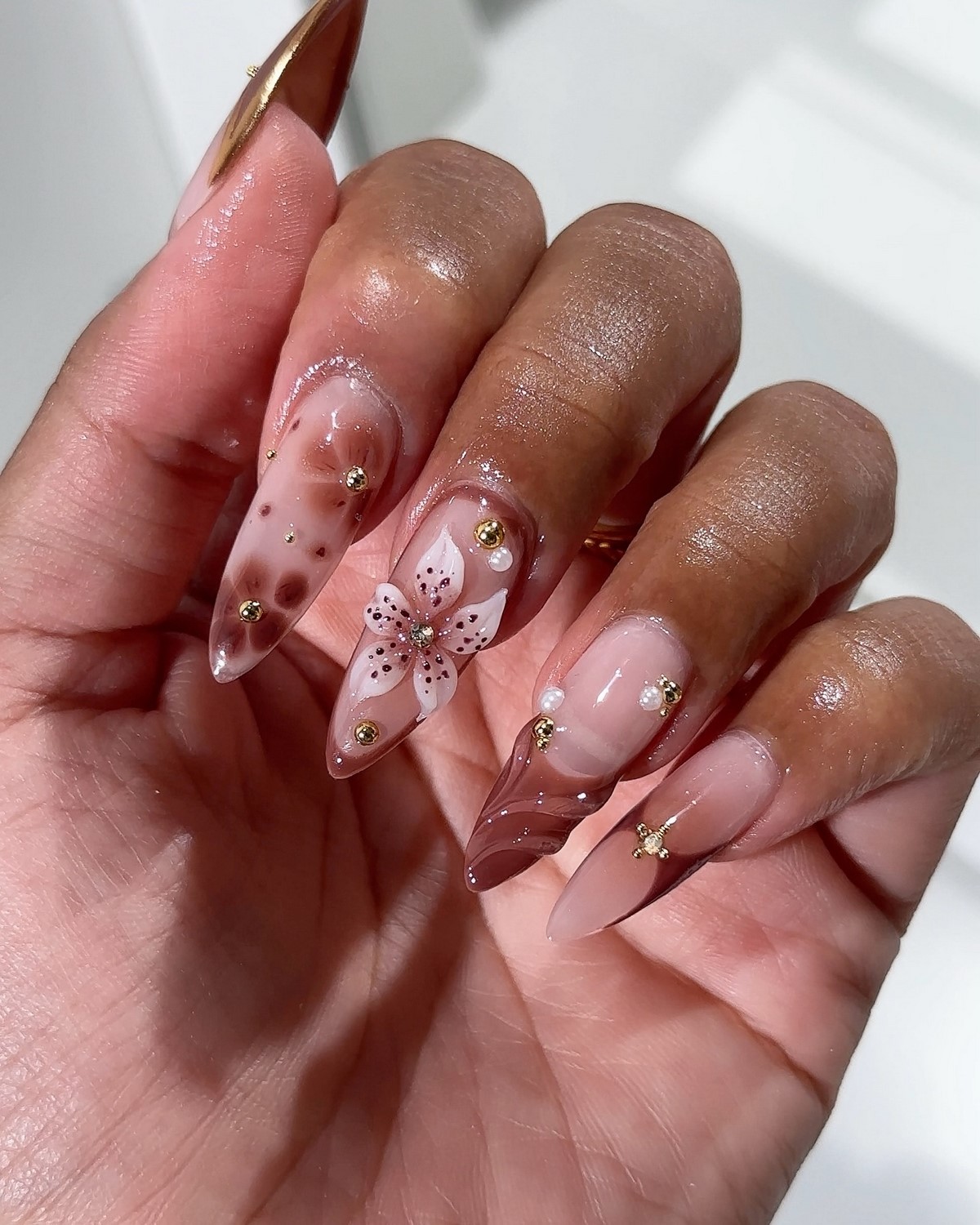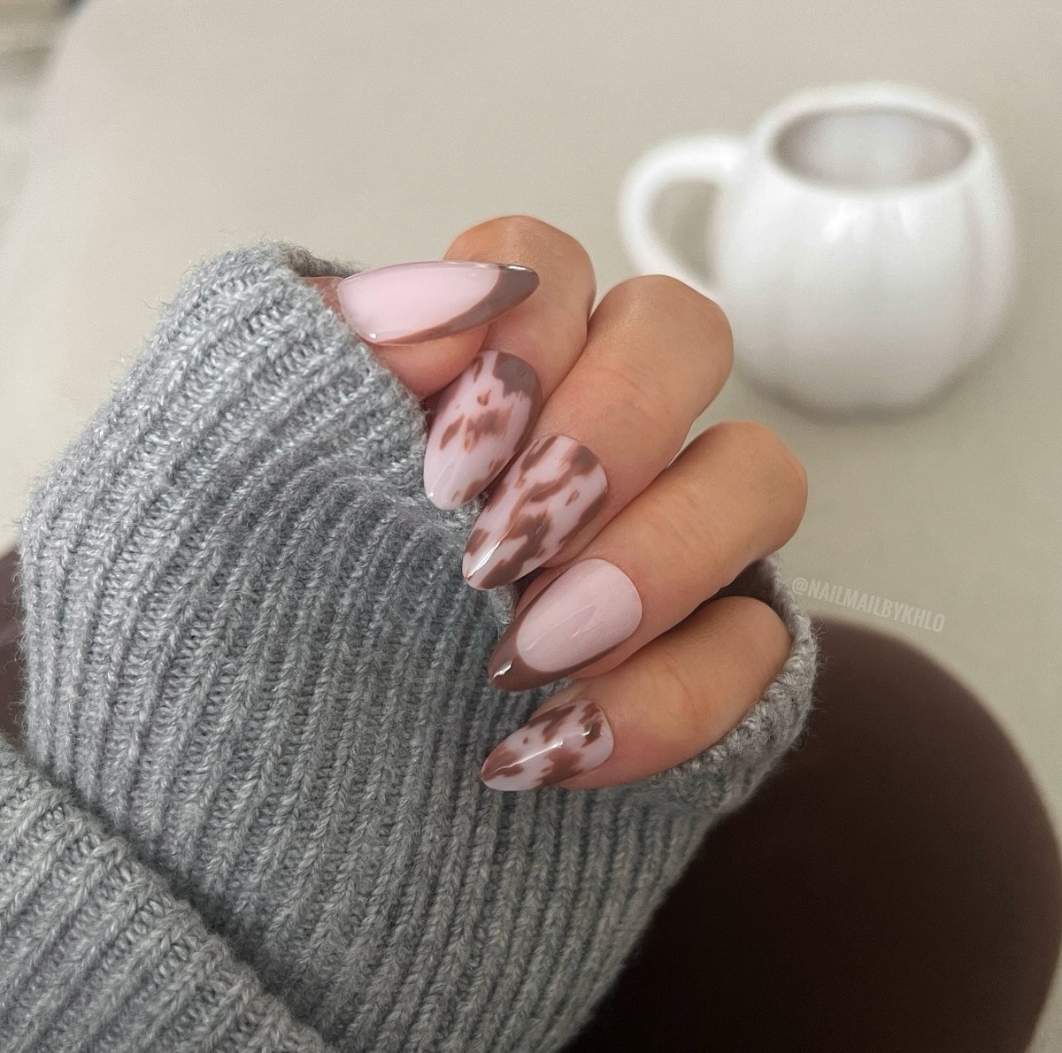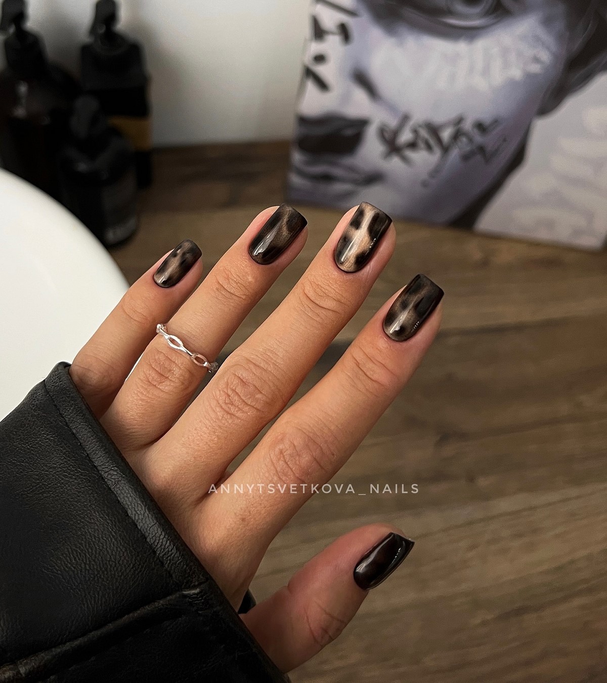 Дизайн выглядит утонченно и при этом универсально — он подходит и для коротких ногтей, и для длинных овальных форм. Современные мастера часто сочетают черепаховый рисунок с прозрачными вставками или золотыми акцентами.