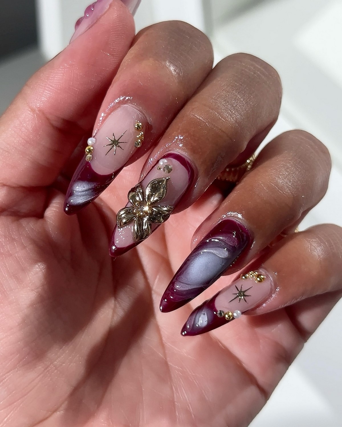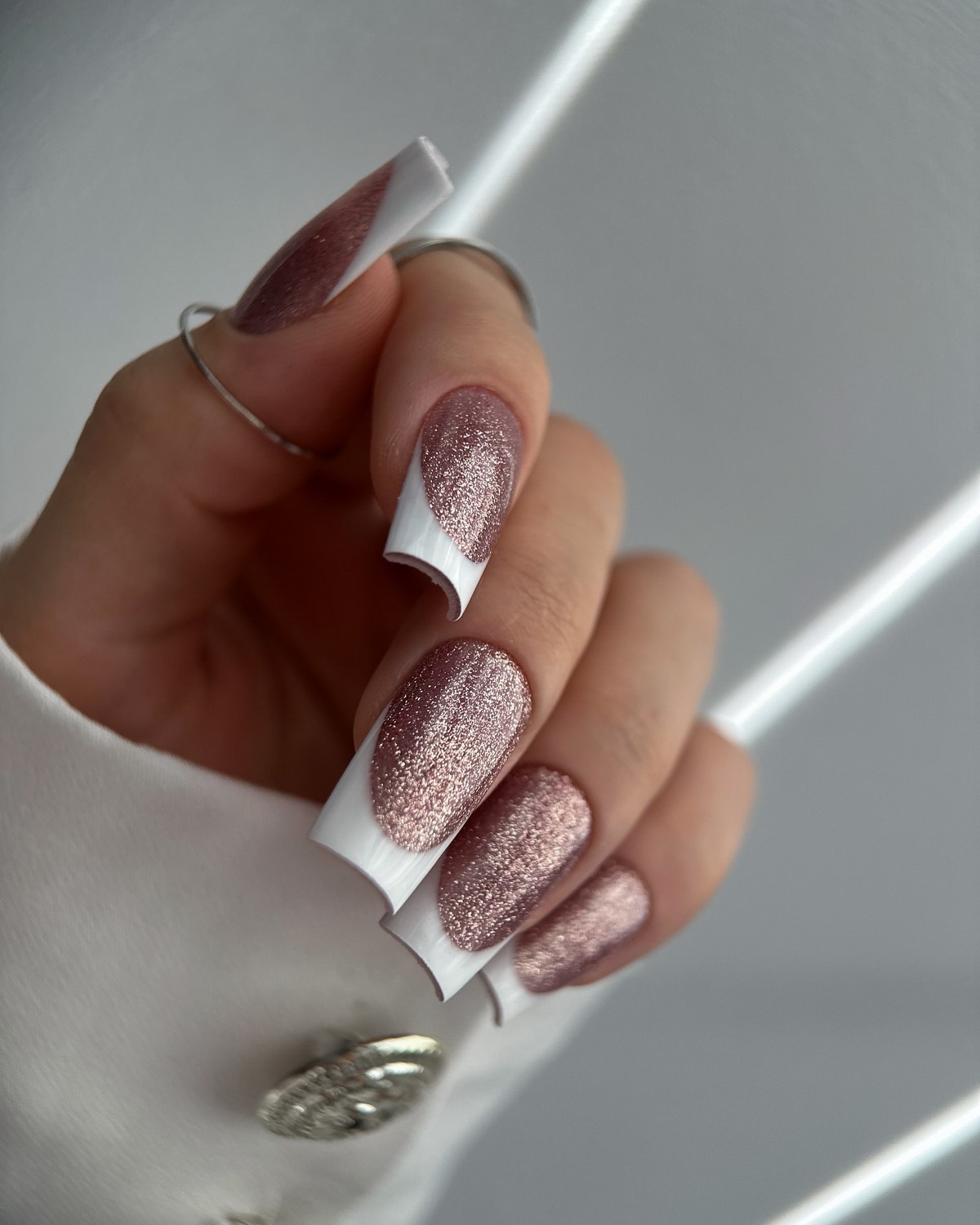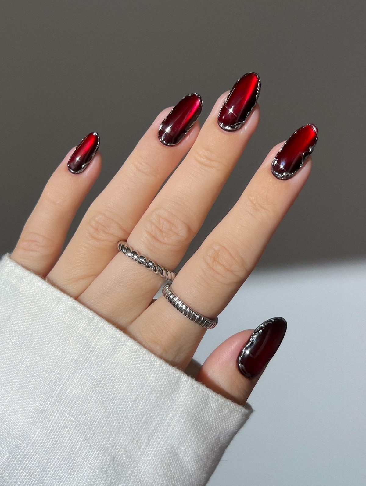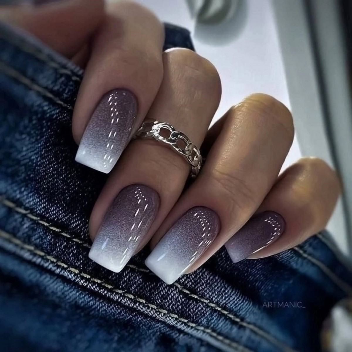 Мастера играют с зеркальной втиркой, слюдой или прозрачными слоями геля, добиваясь глубины и многослойности. Такой маникюр подходит как для повседневных образов, так и для вечерних выходов, особенно в сочетании с серебристым декором.
