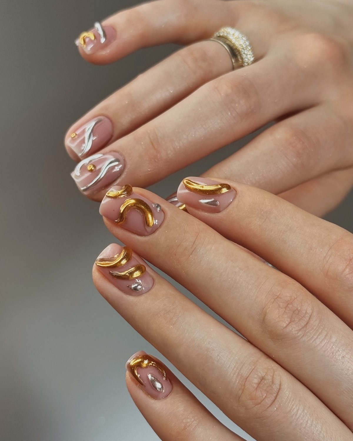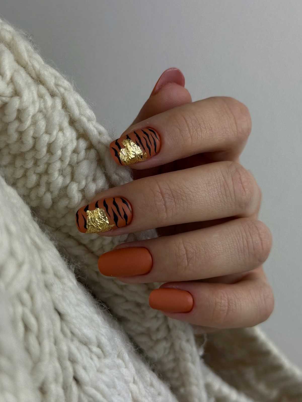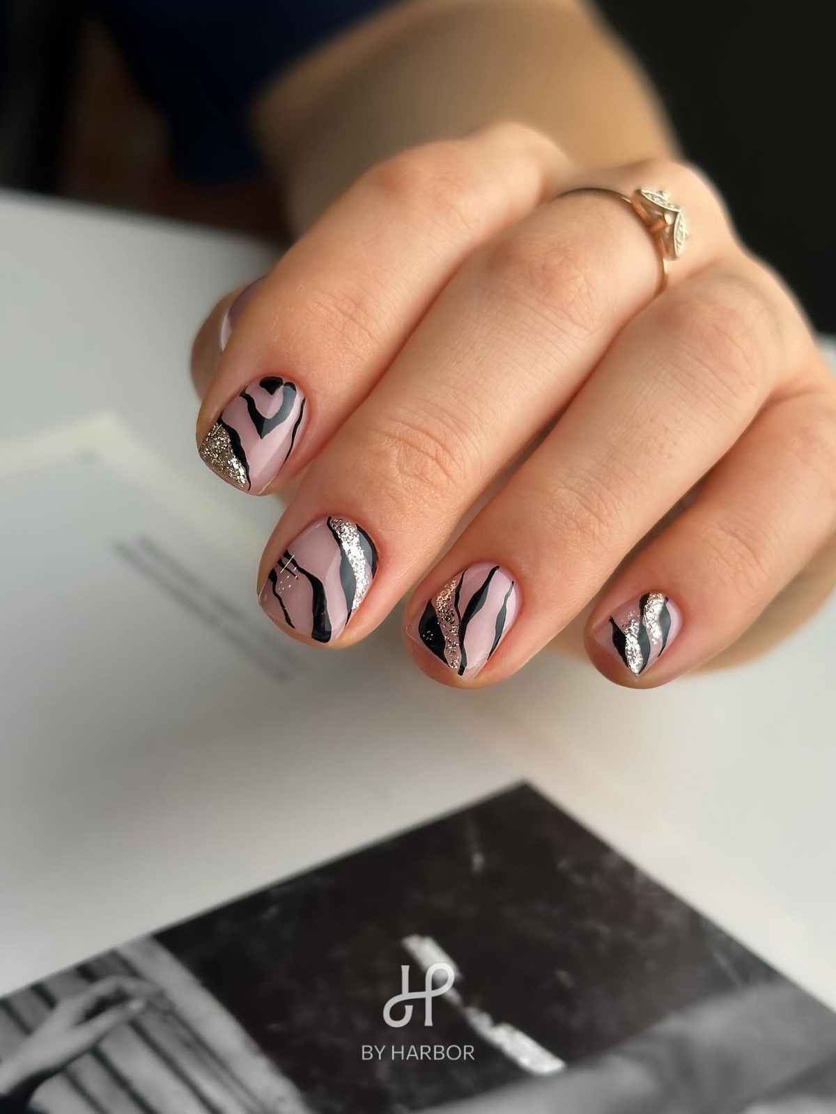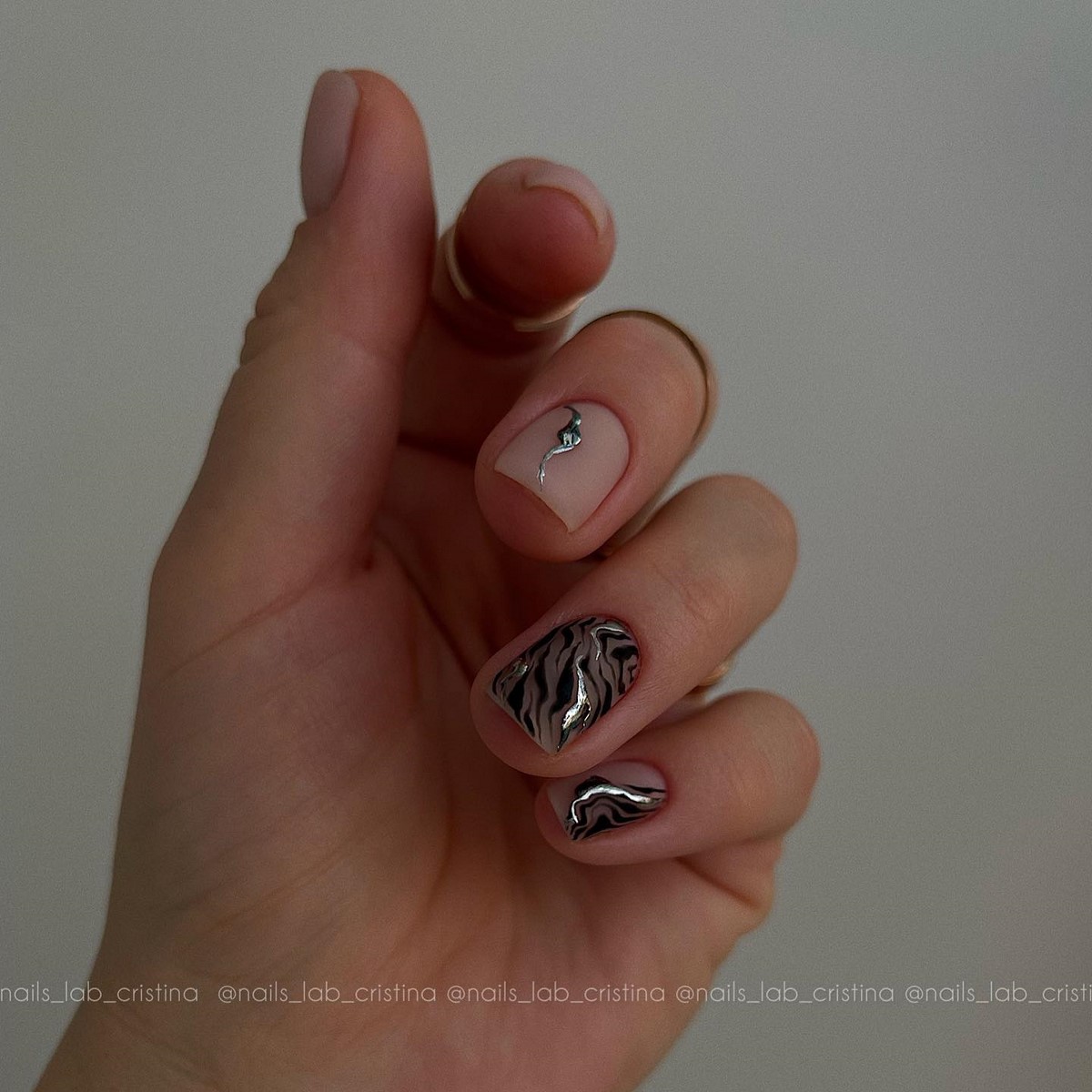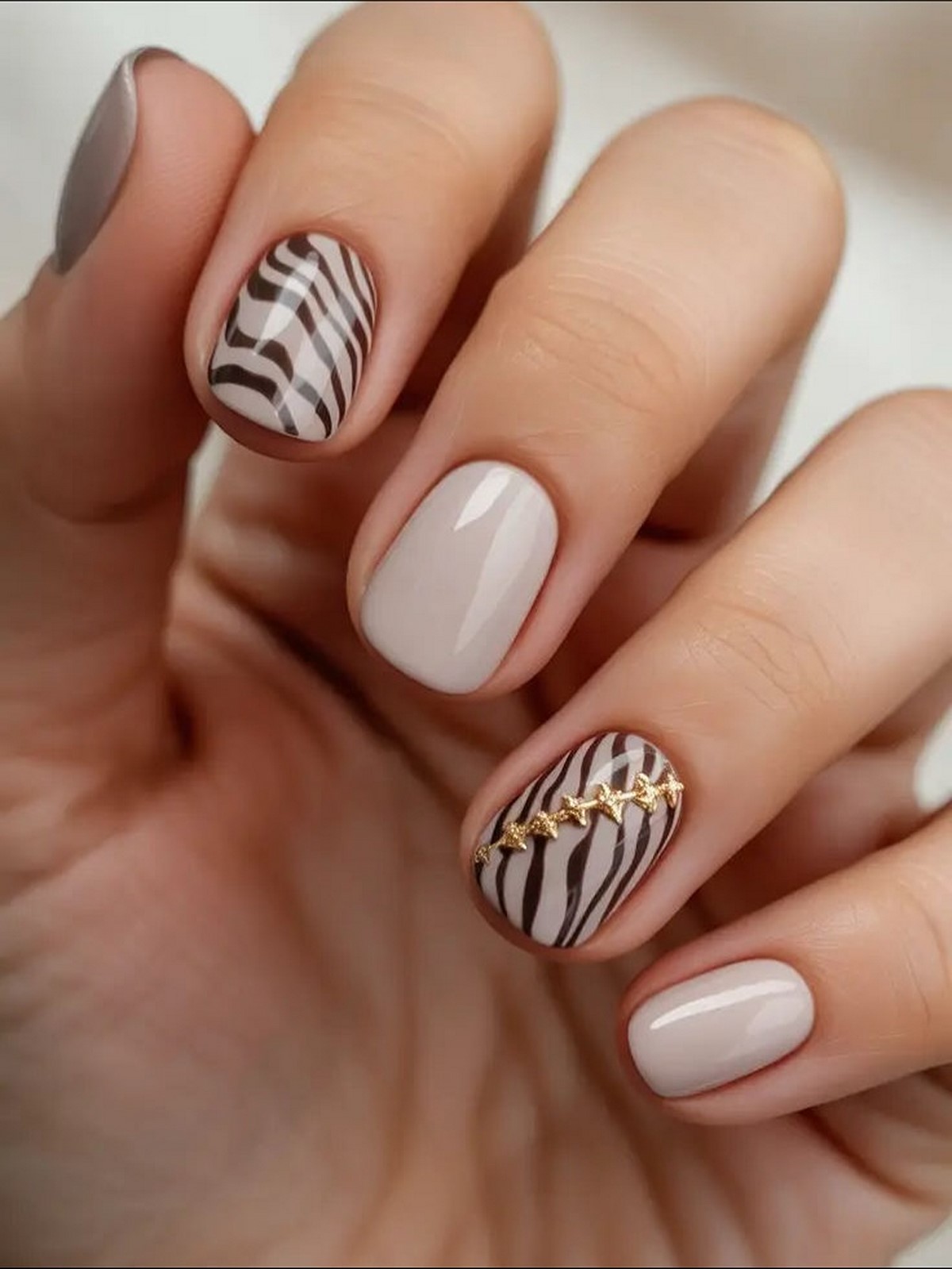 Современная версия «зебры» — тонкие полосы, нанесенные кистью или аэрографом, часто с легким металлическим акцентом. Такой маникюр отлично смотрится на коротких ногтях и добавляет образу дерзости без излишней яркости.