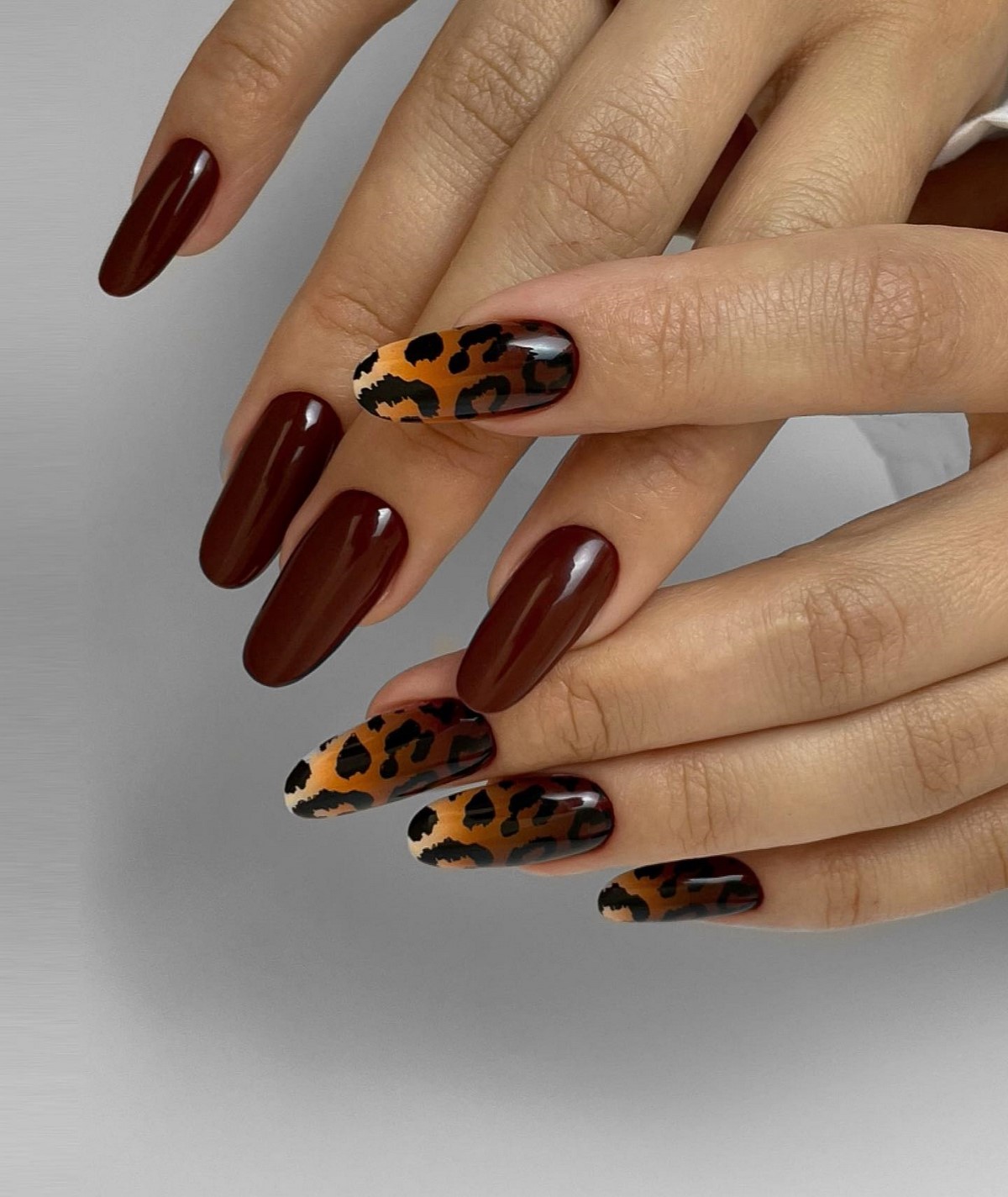 Среди рисунков и принтов популярность набирают «животные» мотивы, минималистичные полосы, акварельные разводы и декоративные элементы с эффектом металла или стекла. Не теряет актуальности и асимметрия — игра форм и покрытий, которая делает маникюр выразительным и современным.