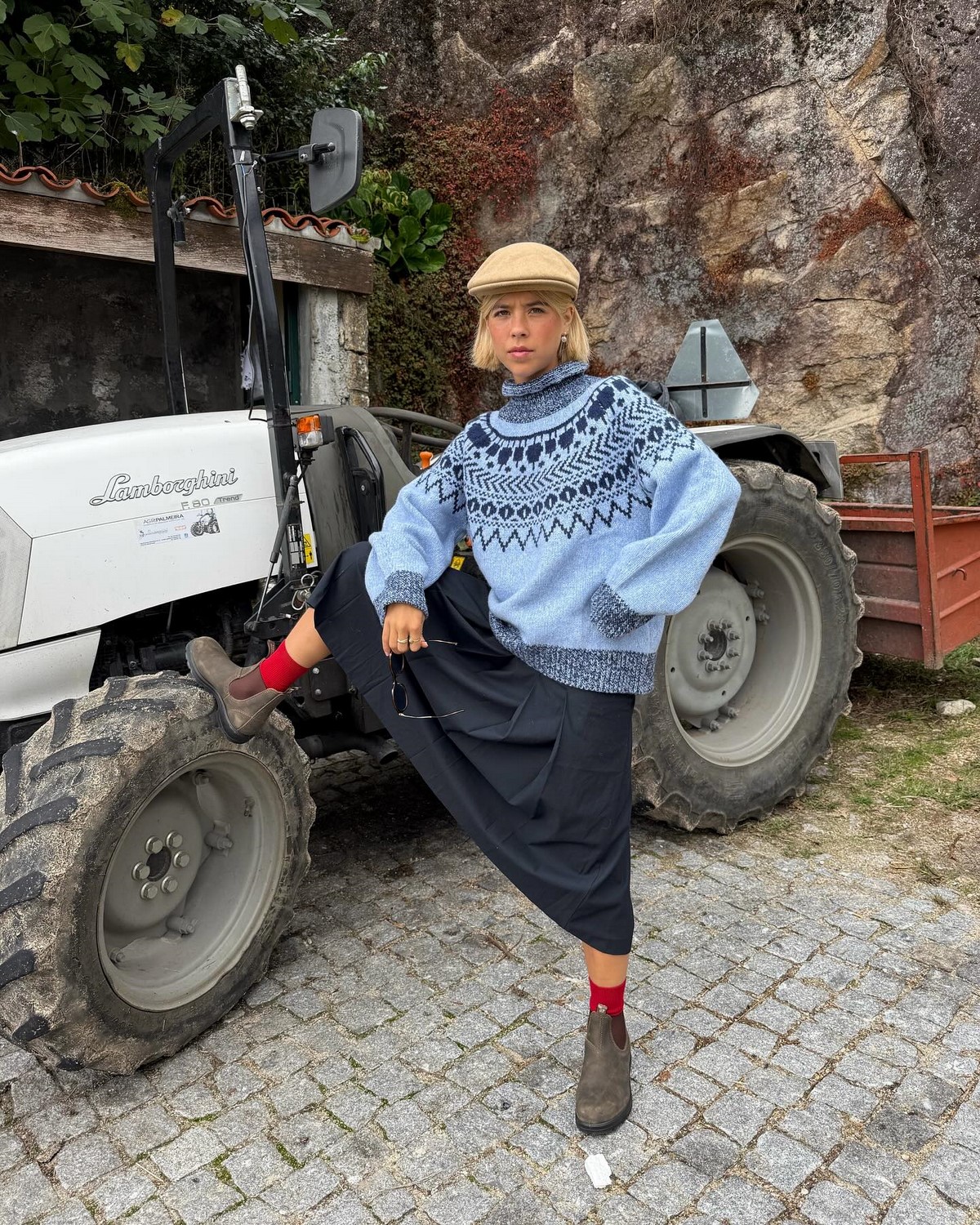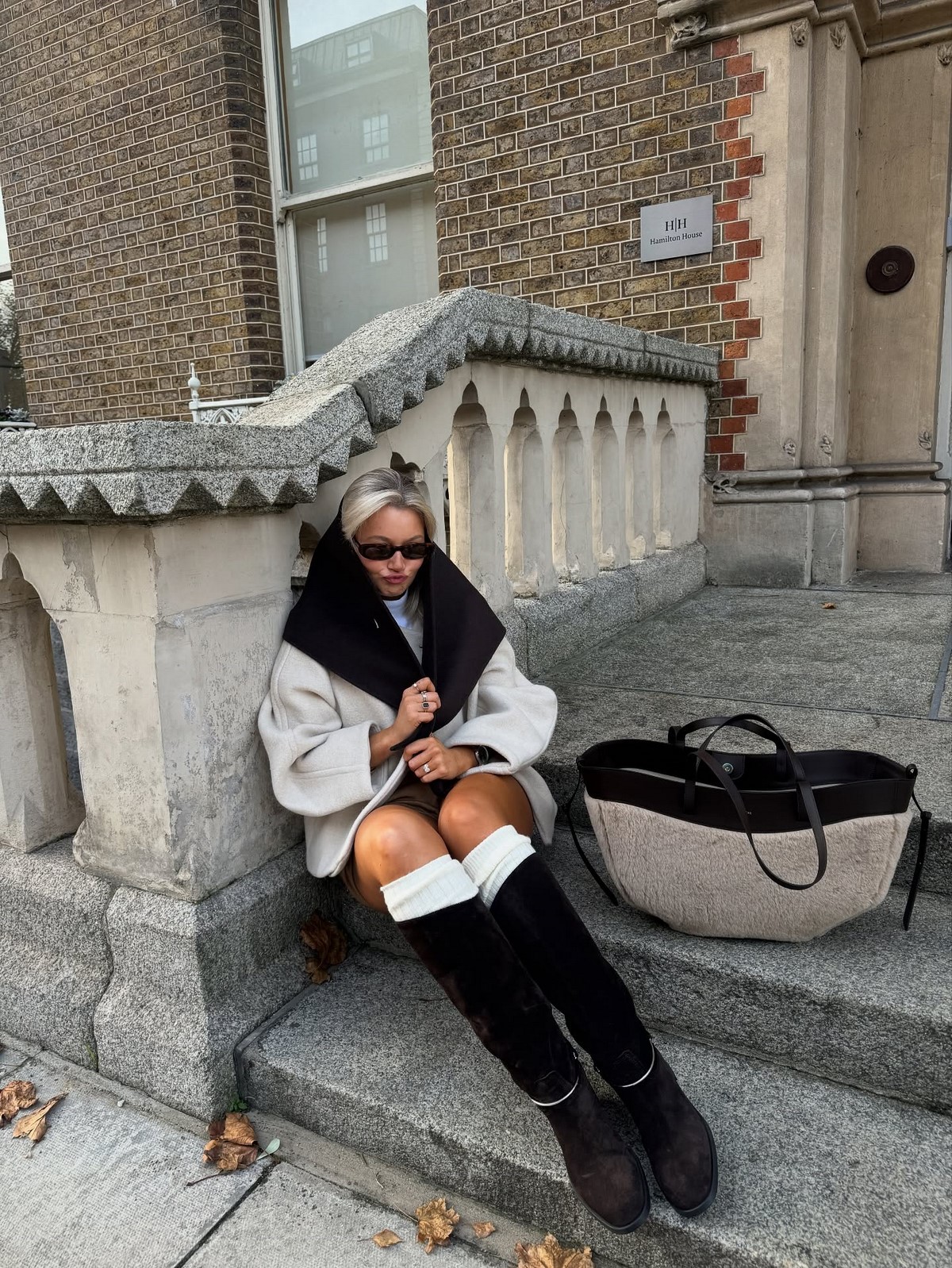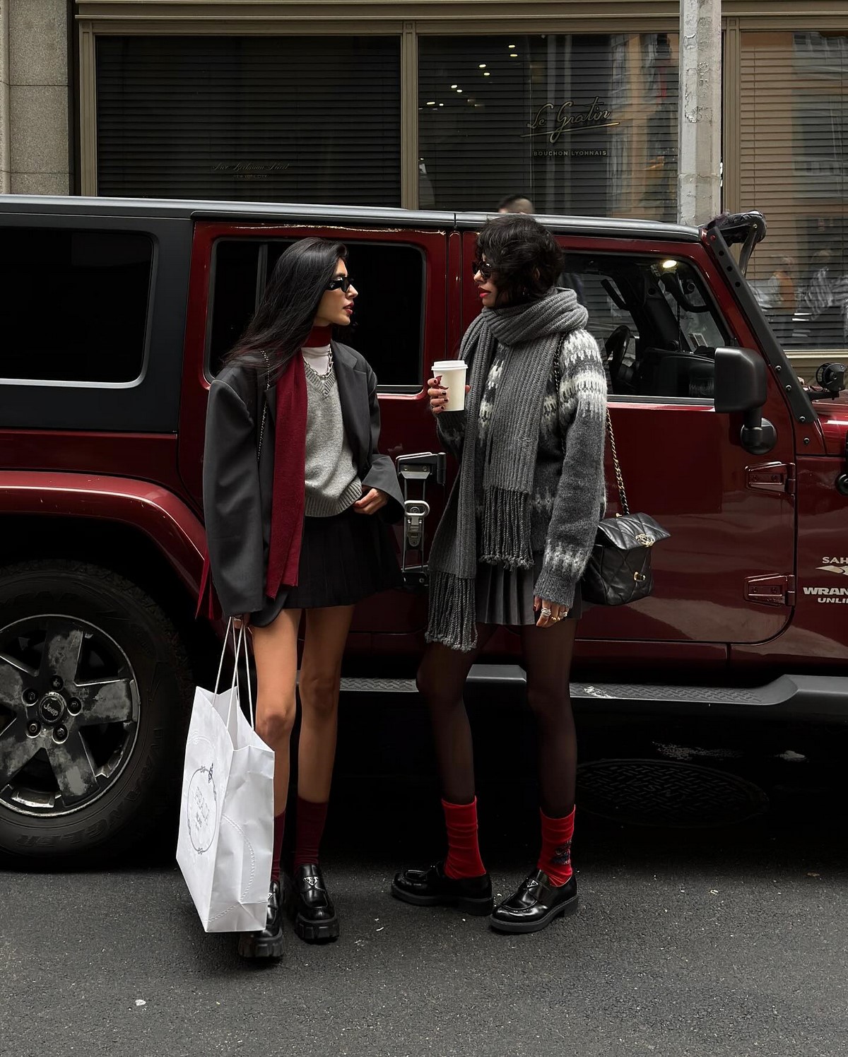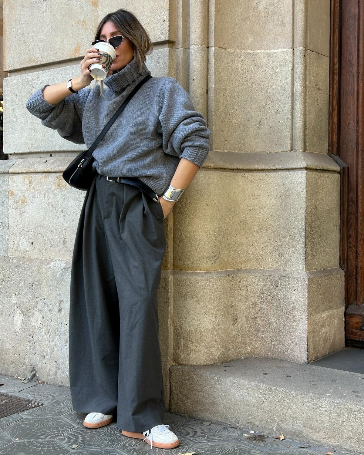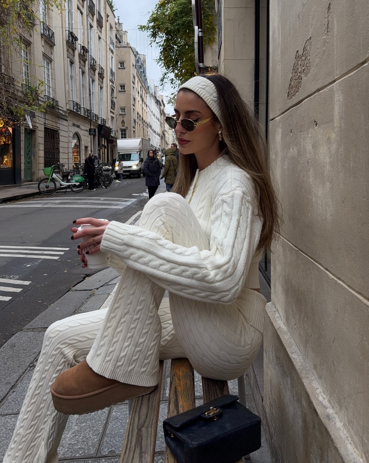 Вязаные комплекты, шерстяные костюмы и свитеры oversize — must-have для холодных месяцев. Обувь и аксессуары тоже подчеркивают уют: сапоги-трубы, ботинки на массивной подошве и шарфы XXL-длины завершают образ.