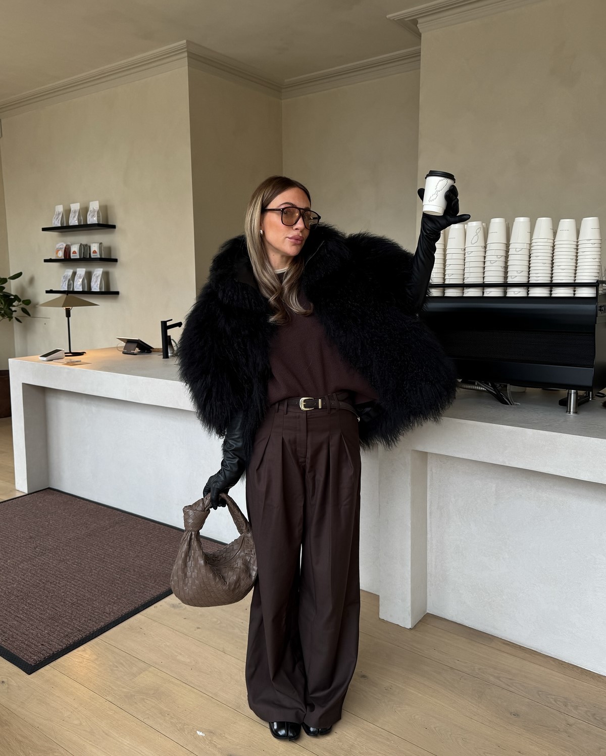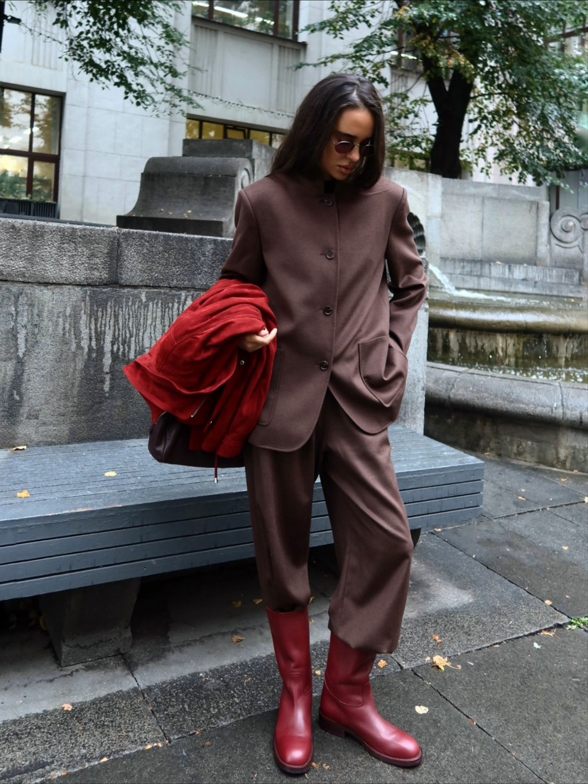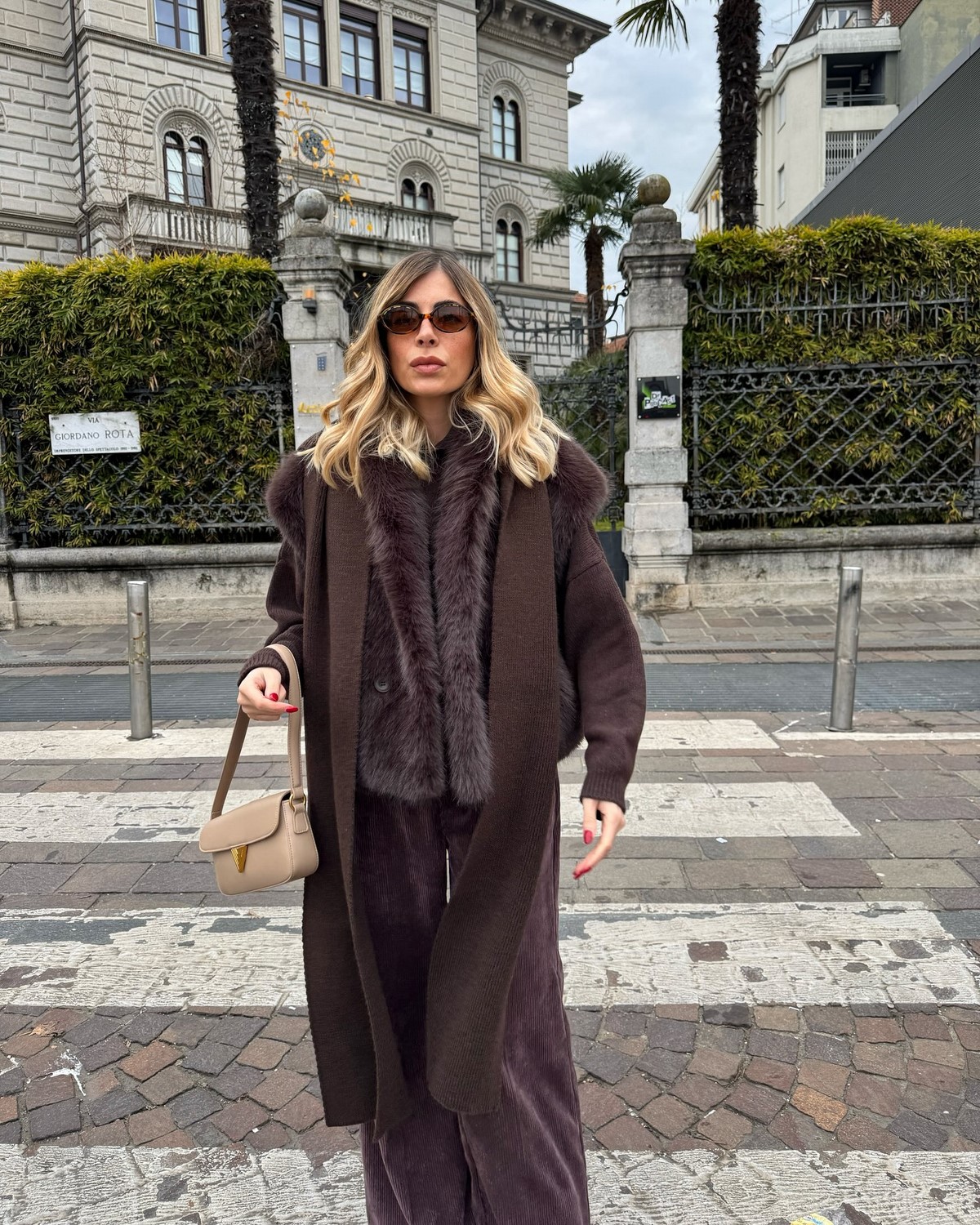 Теплые коричневые тона — must-have этой зимы. От светлого капучино до насыщенного шоколада — они создают уют и элегантность. В коллекциях дизайнеров коричневый используется в кожаных пальто, сапогах, брюках и вязаных комплектах. Это универсальная альтернатива черному, подходящая для любого типа внешности.
