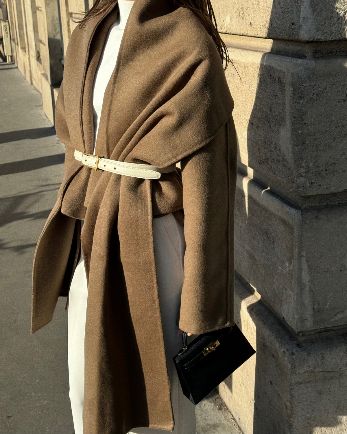 Талия вновь в центре внимания. Широкие кожаные и текстильные пояса подчеркивают женственность, превращая даже объемные пальто или пуховики в элегантные и стройные силуэты. Этот тренд идеально сочетается с ретро-настроением сезона, создавая выразительные образы в духе 70-х.